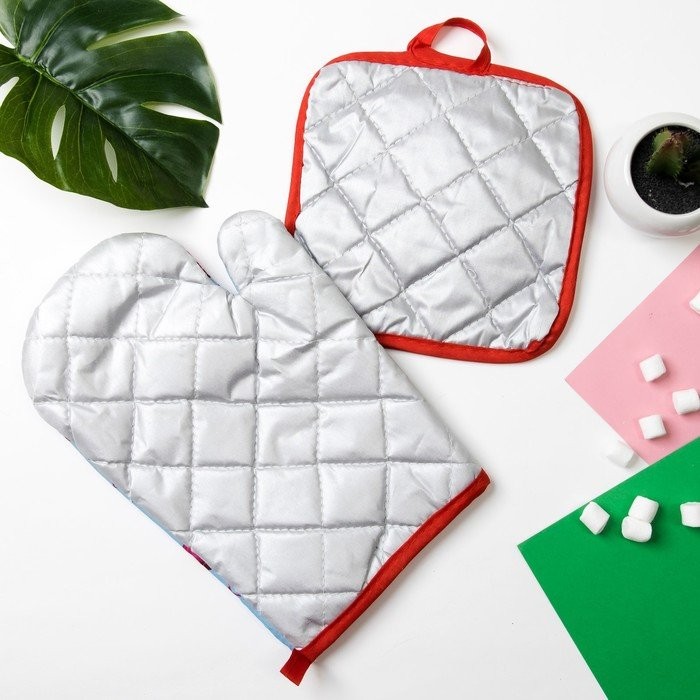 Кухонный набор (2 предмета) Доляна «Фламинго», цвет голубой, прихватка 16×16 см, рукавица 26×16 см, 100% п/э