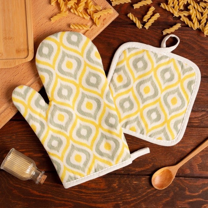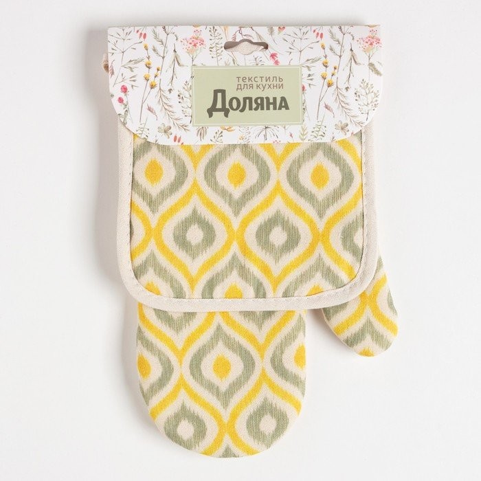 Кухонный набор (2 предмета) Доляна «Волны», прихватка 17×17 см, варежка 26×16 см, 100% п/э