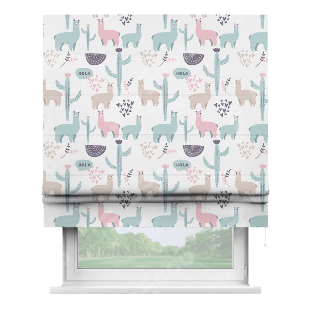 Римская штора «Кортин» для проема «Милый лама» предоставлена в следующих характеристиках:
