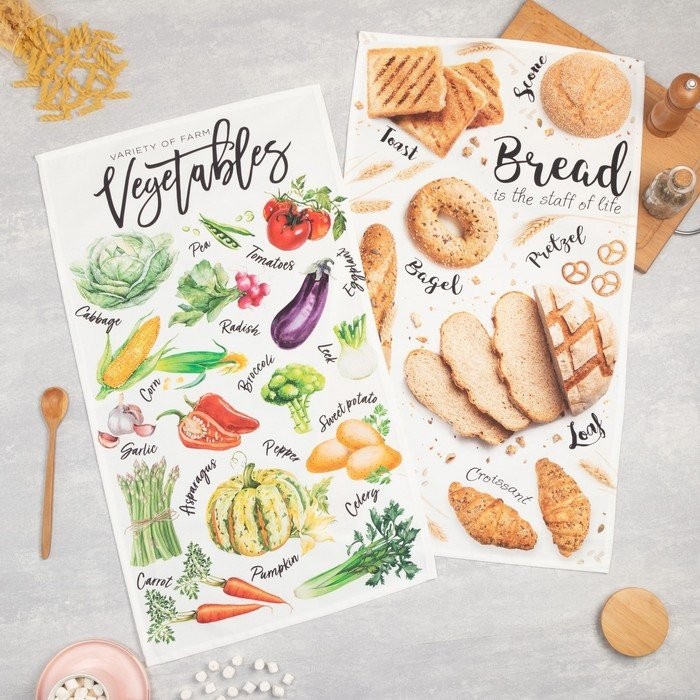 Набор полотенец «Этель» Веган 40×73 см — 2 шт., 100% хл, саржа