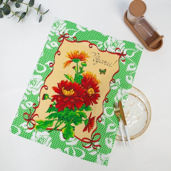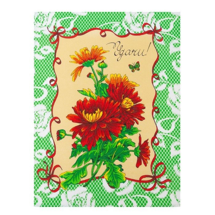 Полотенце в коробке 45×60 см, Удачи, салатовый, вафля, 160 гр/м2, хлопок 100%