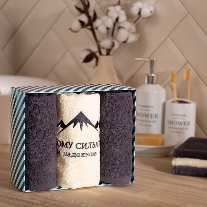 Набор полотенец Экономь и Я «Самому сильному» 30*60 см-3шт, 100% хл, 320 г/м2