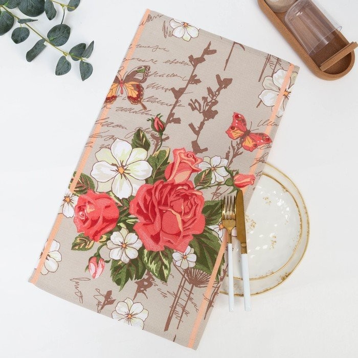 Полотенце 35×60 см, Красные и белые пятна, песочный, вафля, 160 гр/м2, хлопок 100%