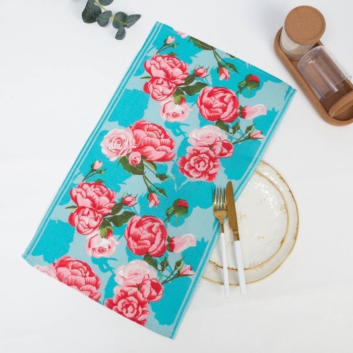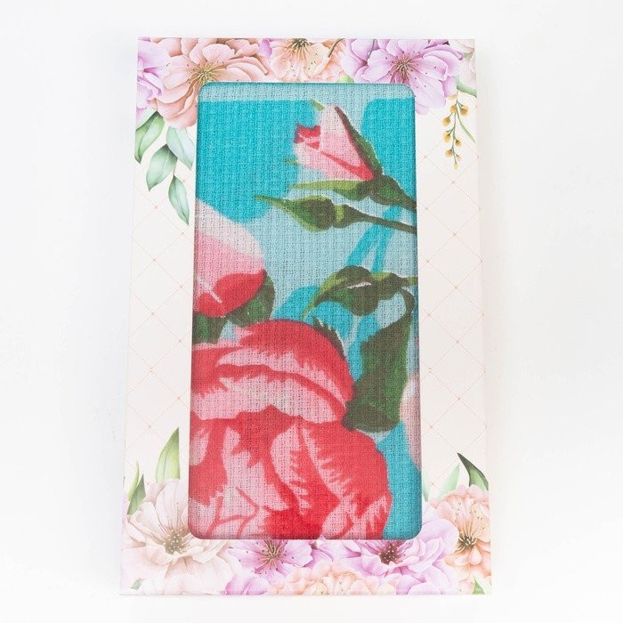 Полотенце в коробке 35×60 см, Пятна, бирюза, вафля, 160 гр/м2, хлопок 100%