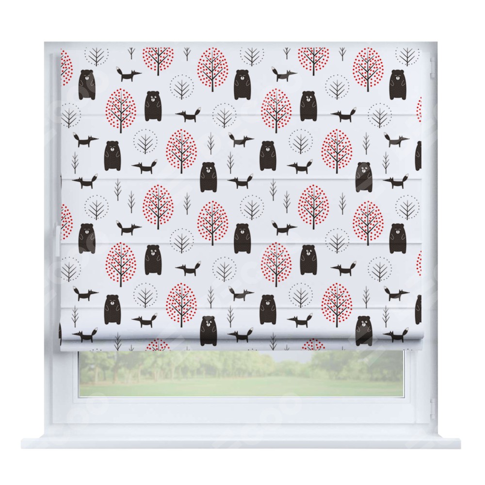Римская штора «Кортин» на створку «Сканди лес» отлично подойдёт для интерьера: на балкон и в детскую.