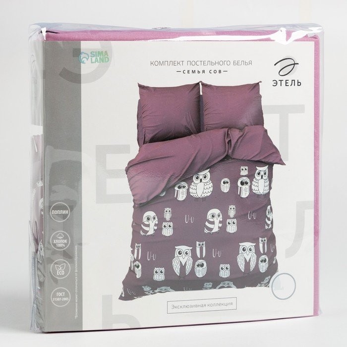 Постельное бельё Этель евро «Семья сов» 200*215 см предоставлена в следующих характеристиках: