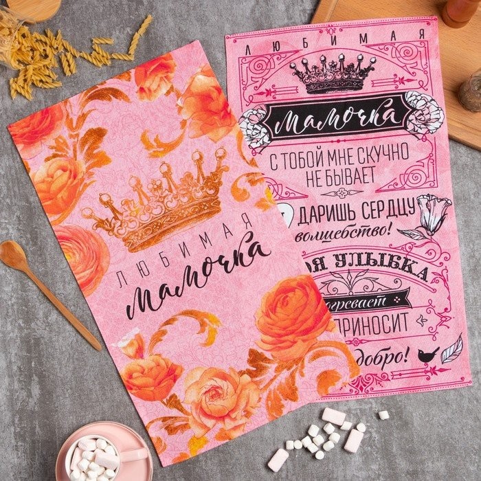 Набор кухонных полотенец Доляна «Мамочка» 35×60 см — 2шт, 100% хл
