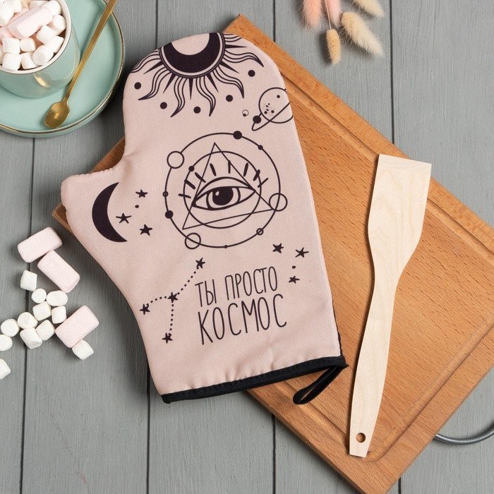 Кухонныйнабор «Ты неземная», варежка-прихватка 20х28см, лопатка деревян.
