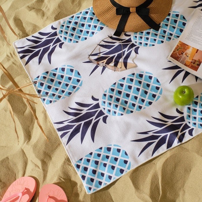Полотенце пляжное Этель «Ананасы» 75*140 см, микрофибра, 100% п/э, 230 гр/м2