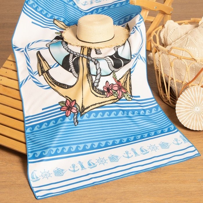 Полотенце пляжное Этель «Якорь» 75*140 см, микрофибра, 100% п/э, 230 гр/м2