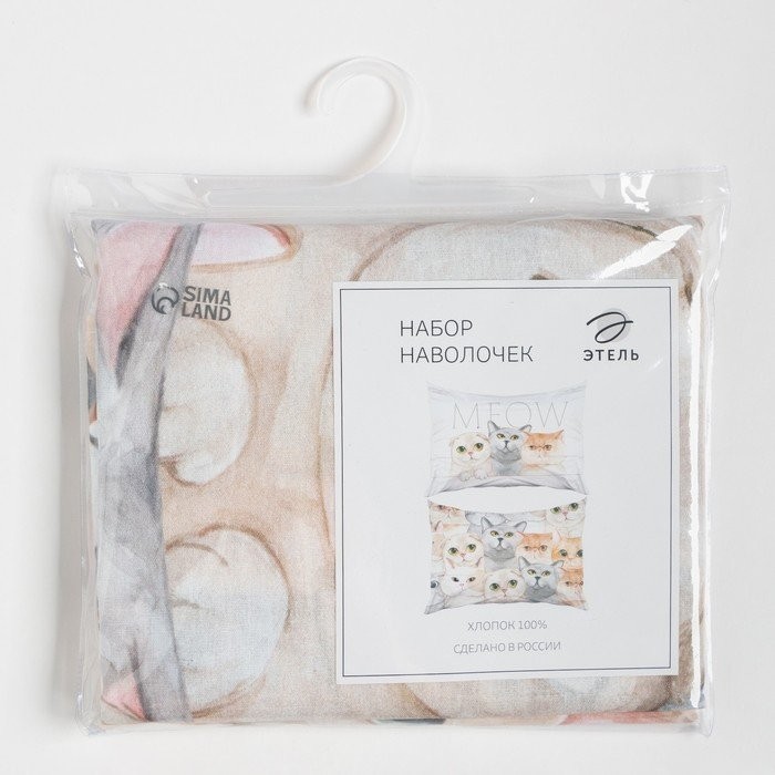 Комплект наволочек «Этель» Meow 50×70 см — 2 шт, 100% хлопок, бязь