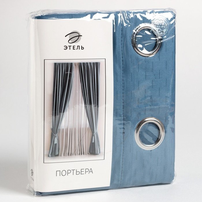 Штора портьерная Этель «Штрихи» цв.синий,на люверсах 130*300 см, 100% п/э
