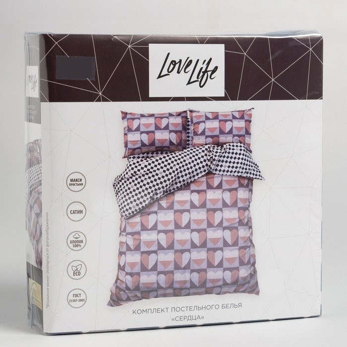 Постельное бельё LoveLife Евро «Сердца» 200х217см, 225х240см, 50х70см-2шт