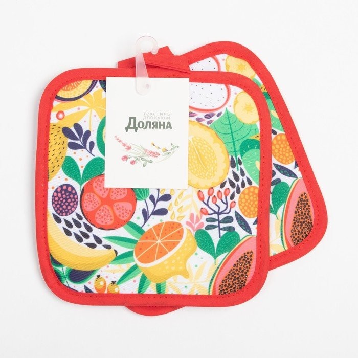 Кухонный набор (2 предмета) Доляна «Фрукты», прихватка 17×17 см, 100% п/э