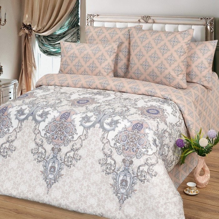 Постельное бельё евро Миланика Медальон 200х217см, 217×240 см, 70х70см 2 шт, поплин 117г/м, хлопок 100%
