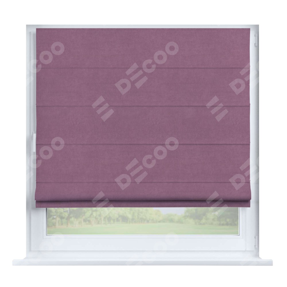 Римская штора производителя «Cortin», устанавливается на створку окна, пошита из ткани вельвет лиловый, артикул 17752. Штора шьётся по индивидуальным размерам, для данного типа римской шторы возможная ширина от 35 до 150 см., высота до 250 см.