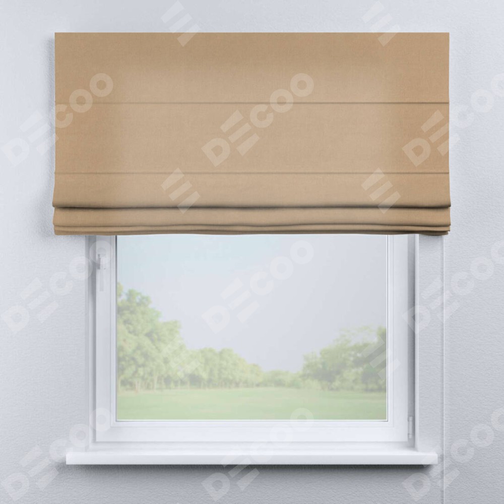 Римская штора производителя «Cortin», используется для проёма, пошита из ткани вельвет песочный, артикул ткани 17740. Имеет универсальный механизм и подходит для монтажа: на потолок, на стену и в нишу.