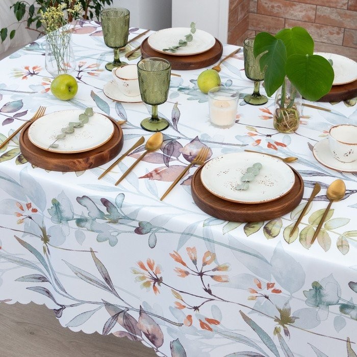 Скатерть Доляна «Акварельные листья» 145×250 см, 100% п/э