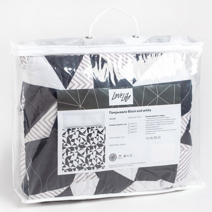 Покрывало LoveLife 2 сп Black and white 180*210±5 см, новосатин,80 г/м2