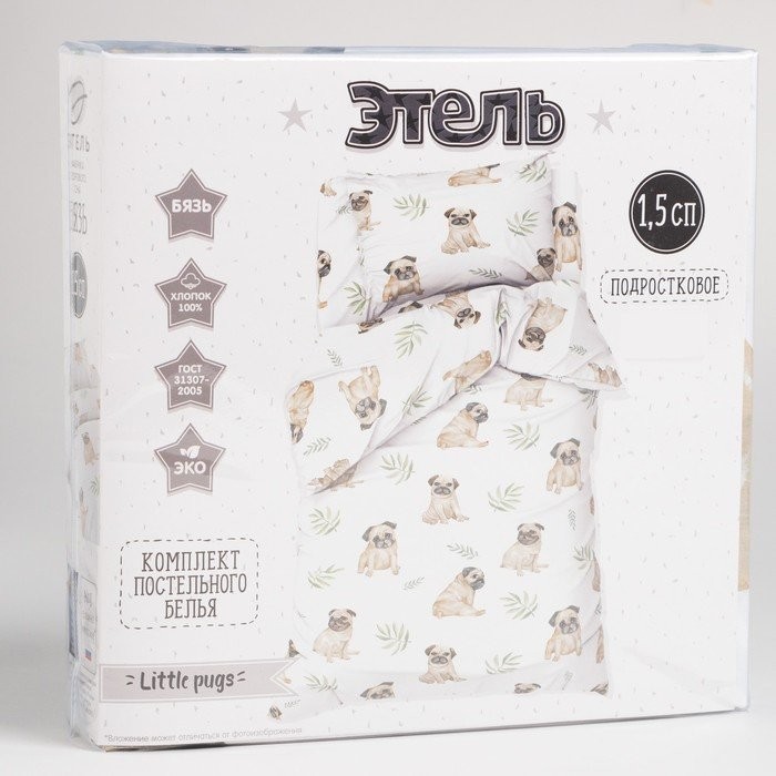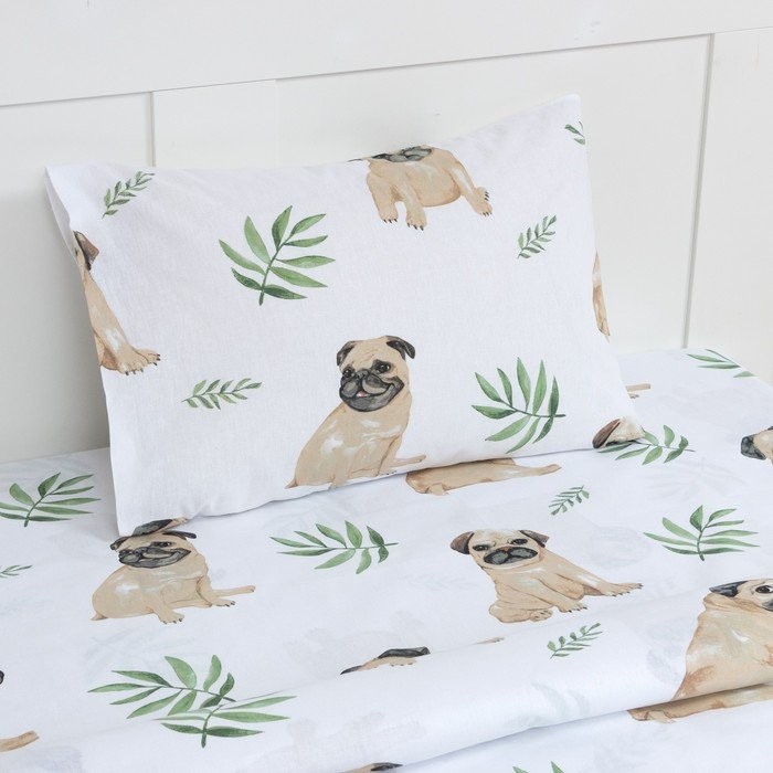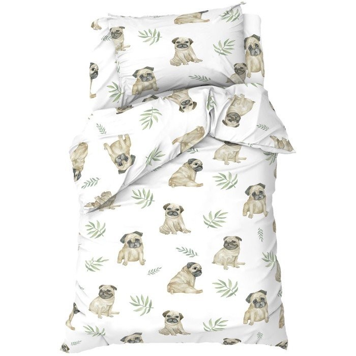 Постельное бельё Этель 1,5 сп «Мопсы» 143×215 см, 150×214 см, 50×70 см -1 шт, 100% хлопок, бязь