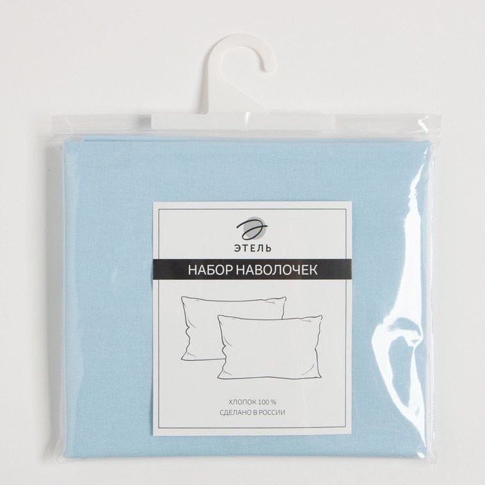 Комплект наволочек «Этель», 50×70 см — 2 шт, светло-голубой, 100% хлопок, поплин