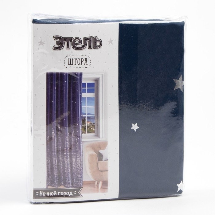 Портьера Этель «Ночной город» без держателя, цвет синий, 110×260 см, блэкаут, 100% полиэстер