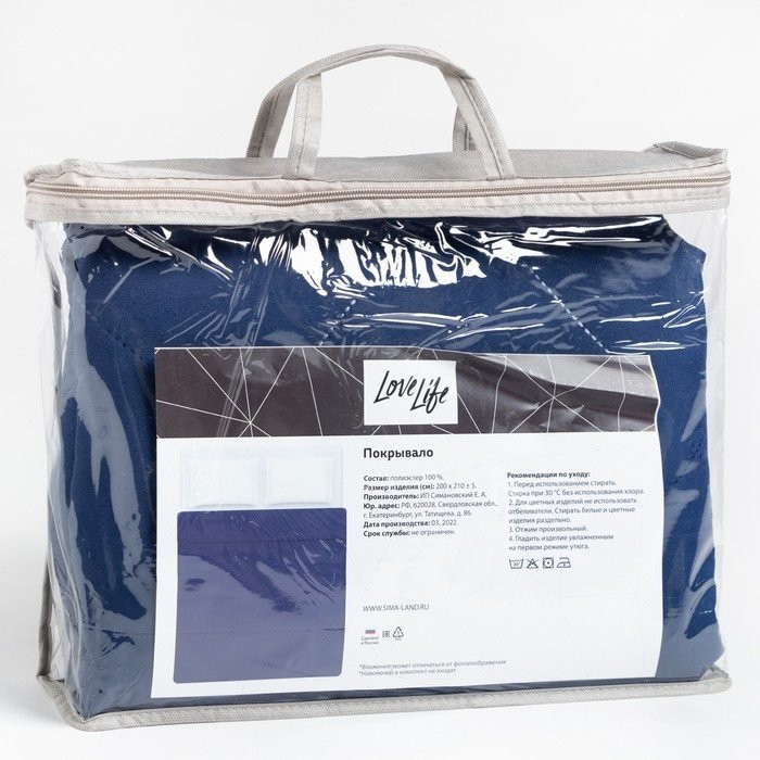 Покрывало LoveLife Евро Макси 240×210±5 см, цвет синий, микрофайбер, 100% п/э