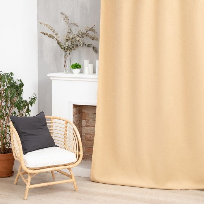 Штора портьерная Этель «Структурная», цвет бежевый, на шторной ленте, 145×265 см, 100% п/э