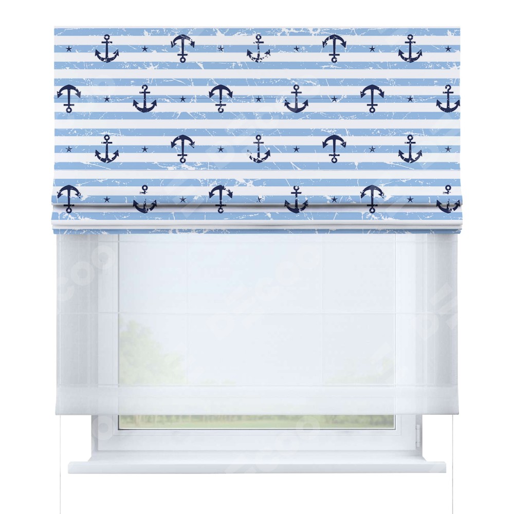 Римская штора «Кортин» день-ночь «Полоски и якори» предоставлена в следующих характеристиках: