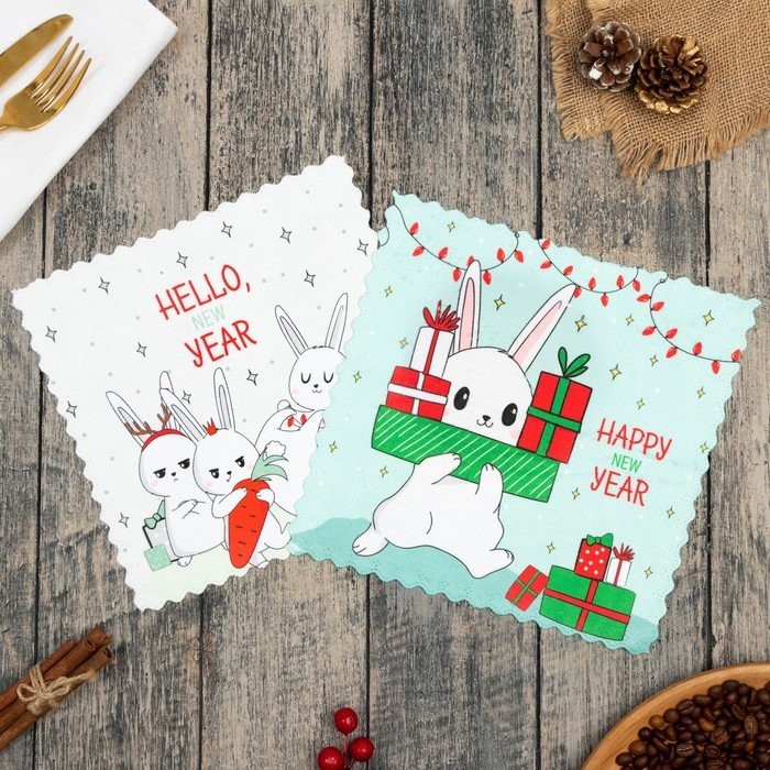 Набор салфеток для уборки Доляна «Hello new year» 20×20 см-2 шт, микрофибра
