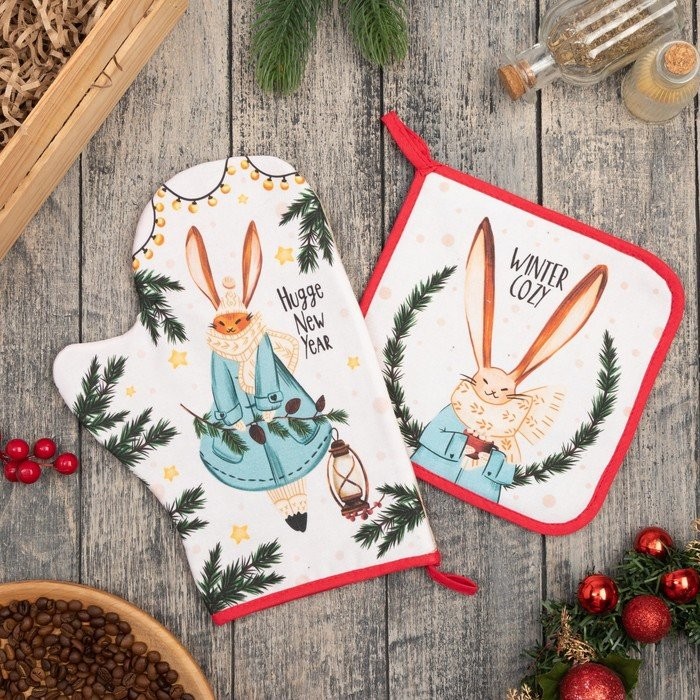 Набор кух. «Hugge New Year» варежка-прихватка 20×28 см, прихватка 19×19 см, 100% хл