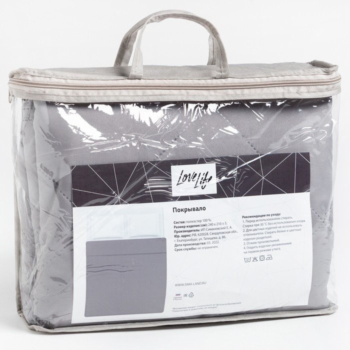 Покрывало LoveLife 1,5 сп 150×210±5 см, цвет серый, микрофайбер, 100% п/э