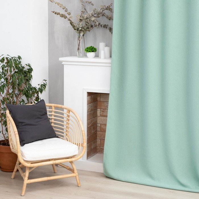 Штора портьерная Этель «Структурная», цвет светло зелёный, на шторной ленте, 130×300 см, 100% п/э