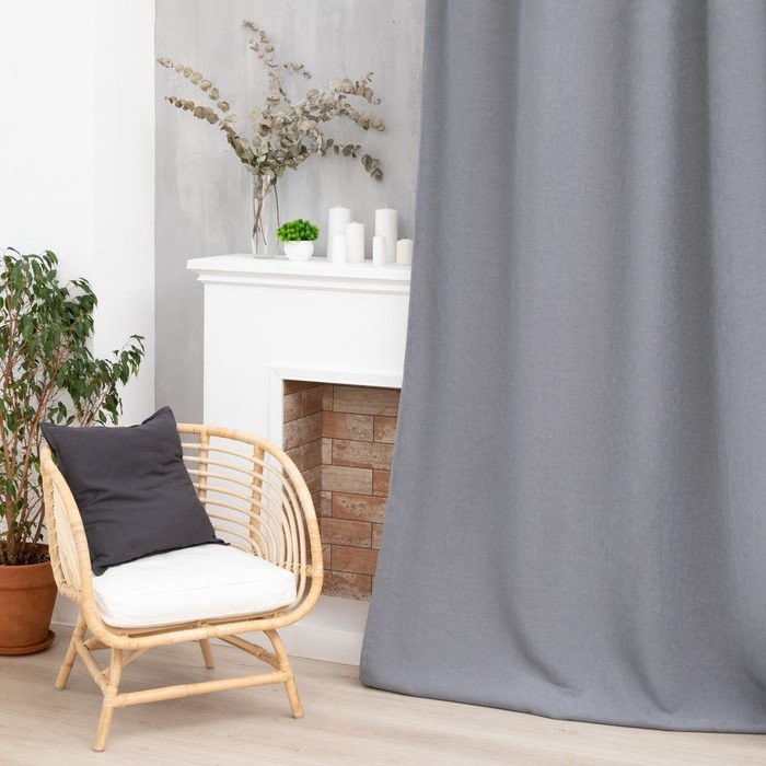 Штора портьерная Этель «Структурная», цвет серый, на шторной ленте, 130×300 см, 100% п/э