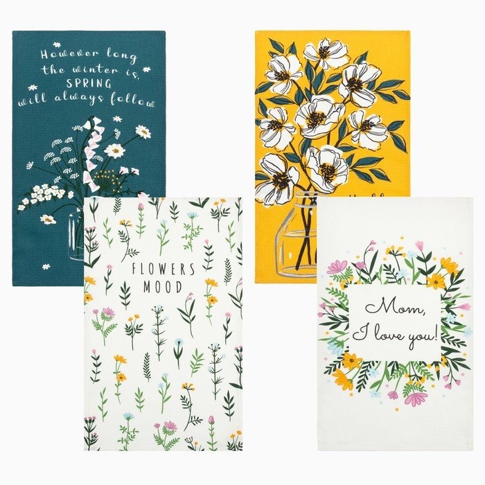 Набор полотенец кух. «Доляна» Hello spring 35×60 см -4 шт, 100% хл, вафля 160 г/м2