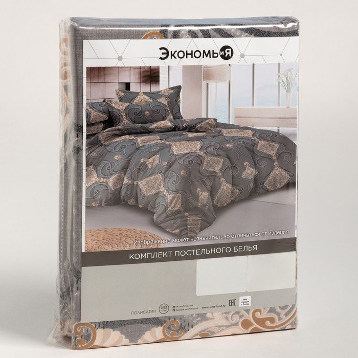 Постельное бельё Экономь и Я Евро «Минимализм» 200×210 см, 220×215 см, 70×70 см-2 шт, полисатин, 80 г/м²