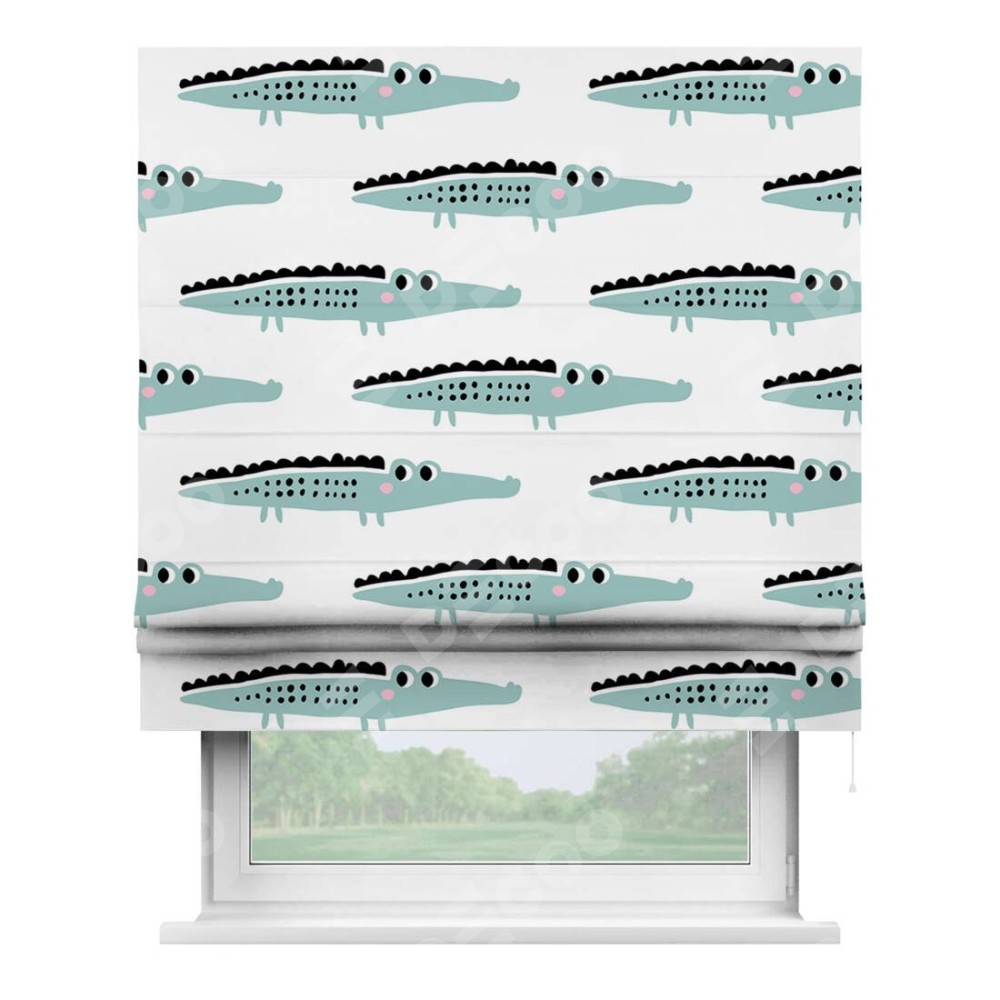 Римская штора «Кортин» для проема «Мистер Крок» отлично подойдёт для интерьера: в детскую и на балкон.