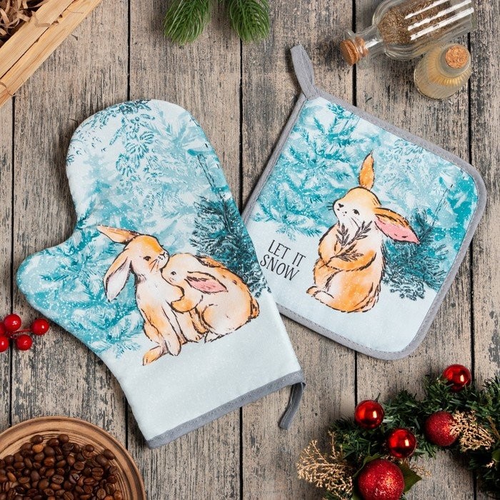 Набор кух. «Let it snow» варежка-прихватка 20×28 см, прихватка 19×19 см, 100% хл