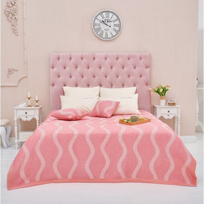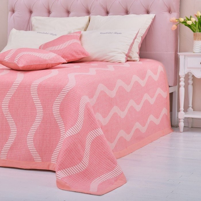 Покрывало хлопковое Этель «Волны» 180×240 см, цвет розовый, 100% хлопок, 300гр/м2