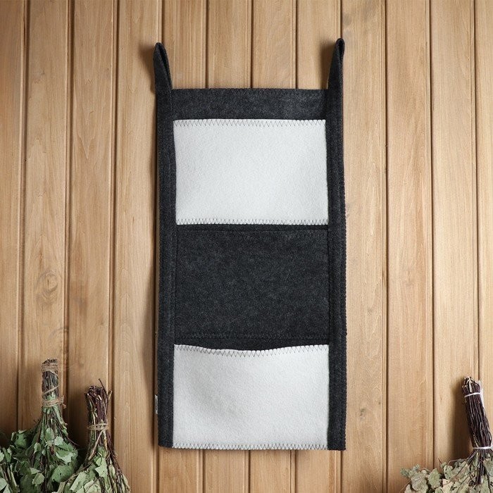 Коврик банный настенный, войлок, 3 кармана 79×36 см черно-белый