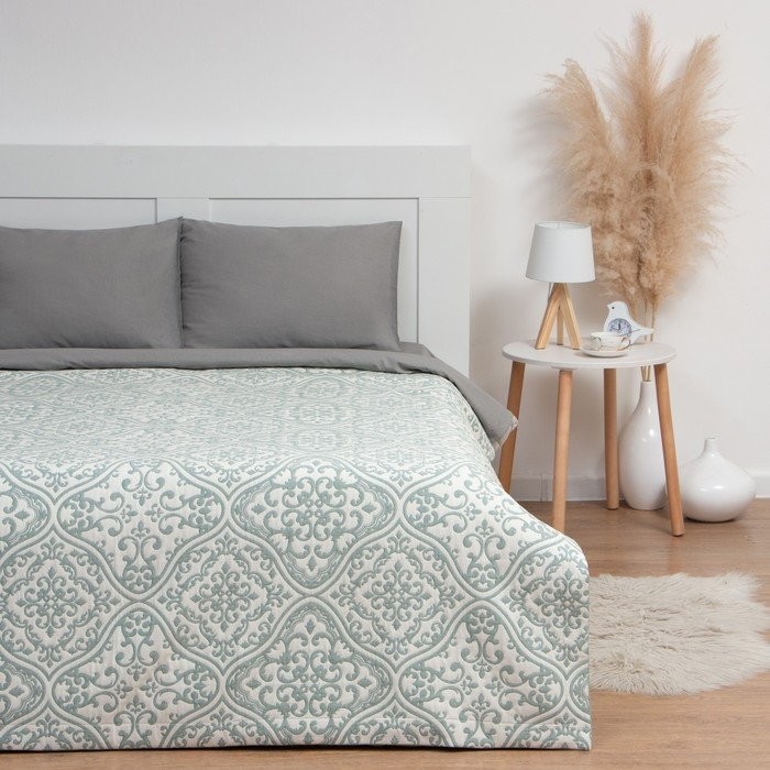 Покрывало хлопковое Этель «Орнамент» 220×240 см, цвет зелёный, 100% хлопок, 300гр/м2