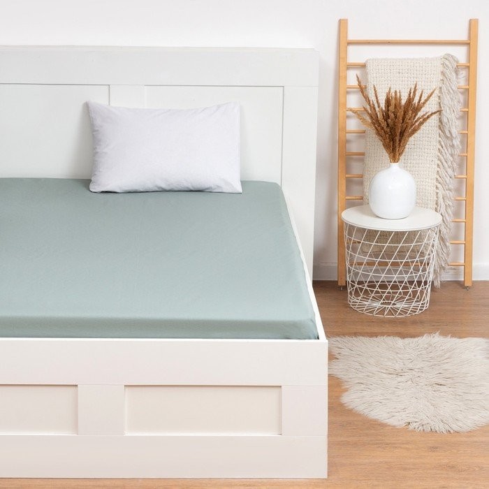Простыня Этель 150×215, цвет серо-зелёный, 100% хлопок, бязь 125г/м2