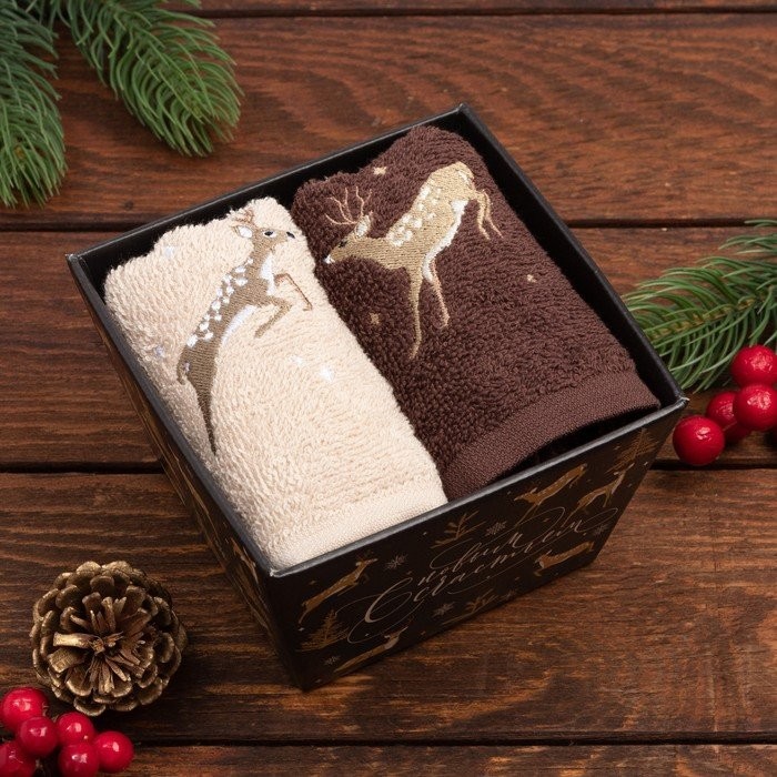 Набор полотенец «С новым счастьем» 30×60 см-2шт, 100% хлопок 340 г/м2