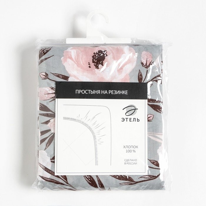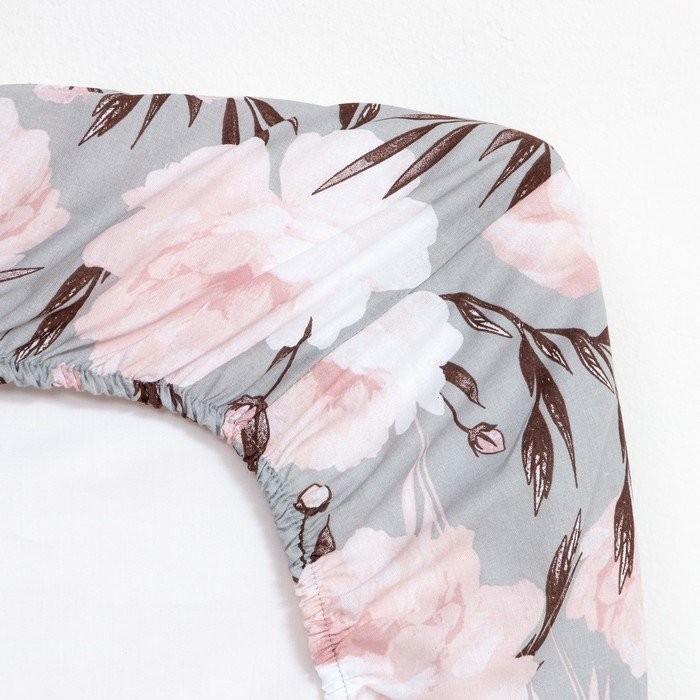 Простыня на резинке Этель 140х200×25 см, Peonies, 100% хлопок, поплин,125 г/м2