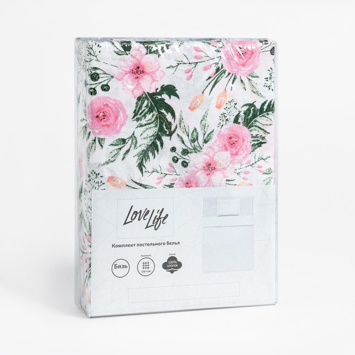Постельное бельё LoveLife 1.5 сп «Цветы» 147×210, 150×215, 50×70 -1 шт, 100% хлопок, бязь 120 г/м2