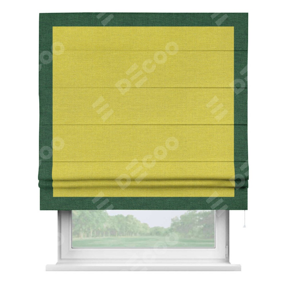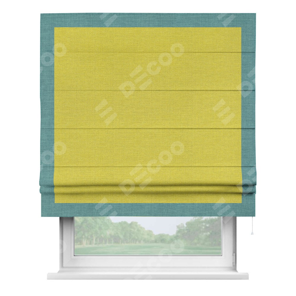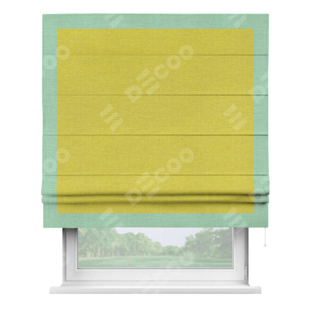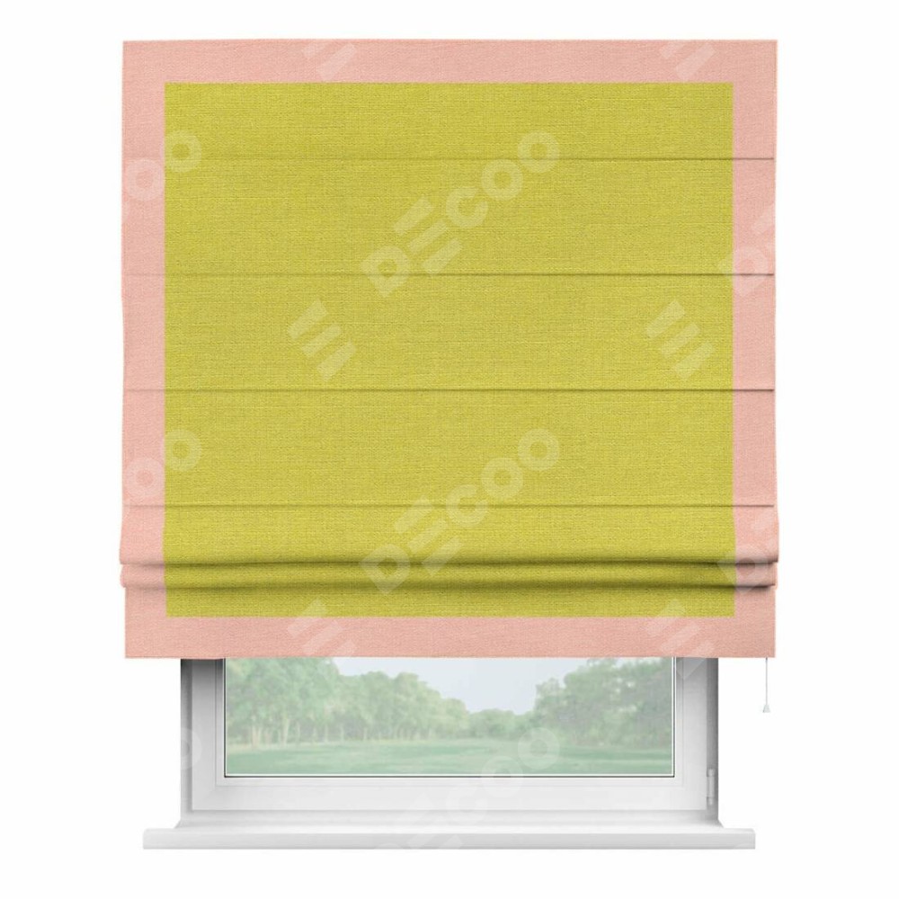 Римская штора «Кортин» с кантом Чесс, для проема, ткань лён салатовый