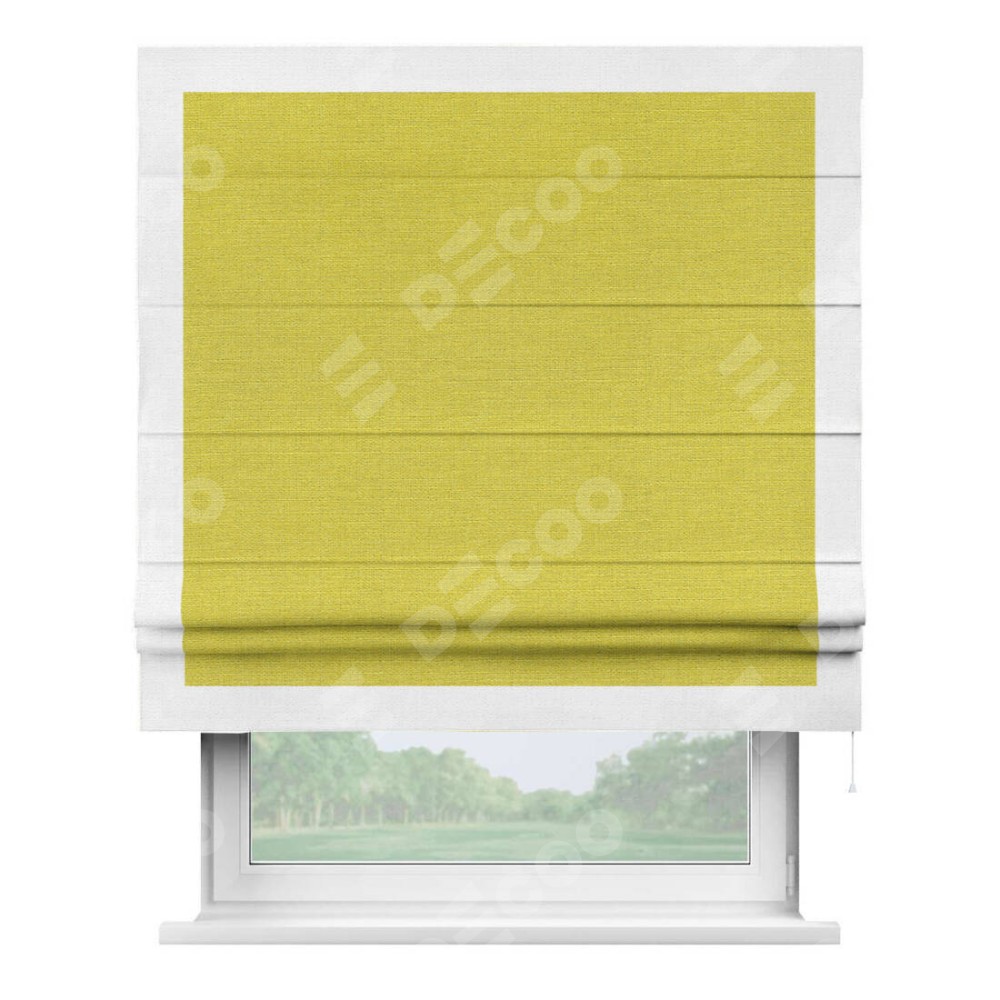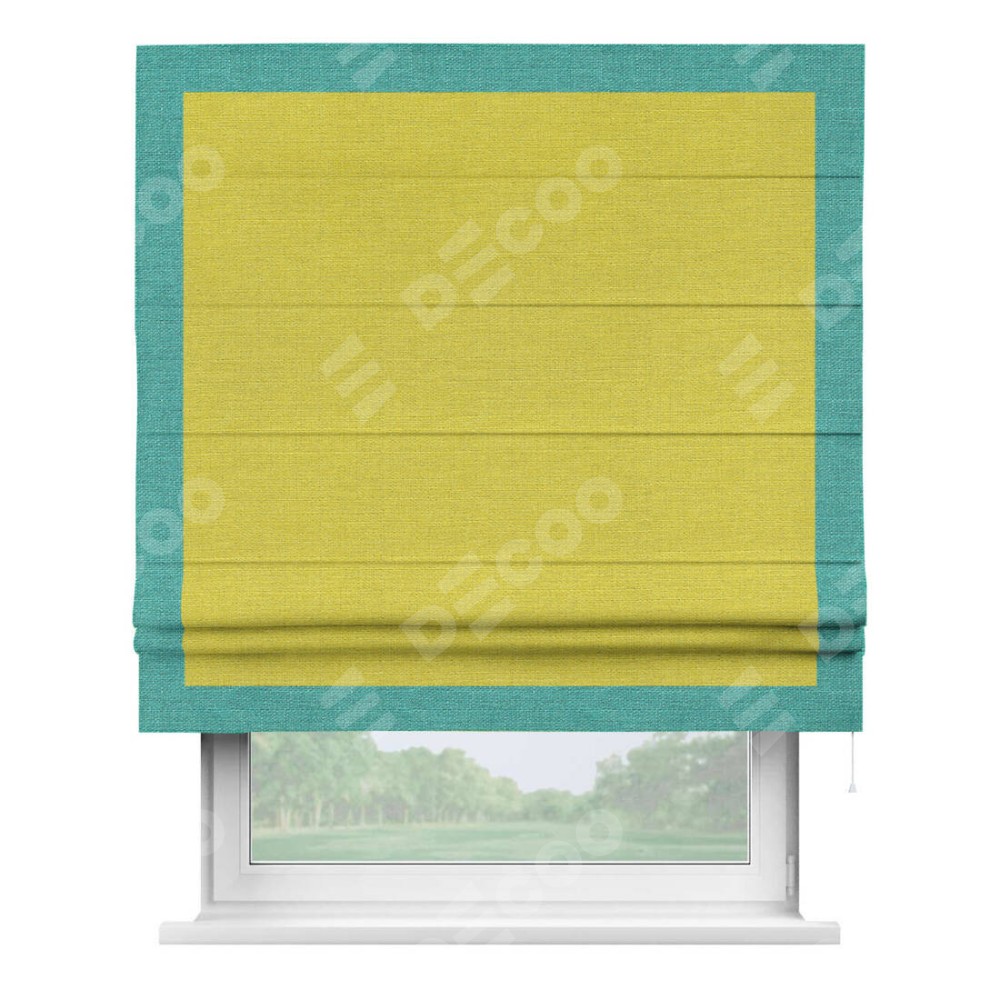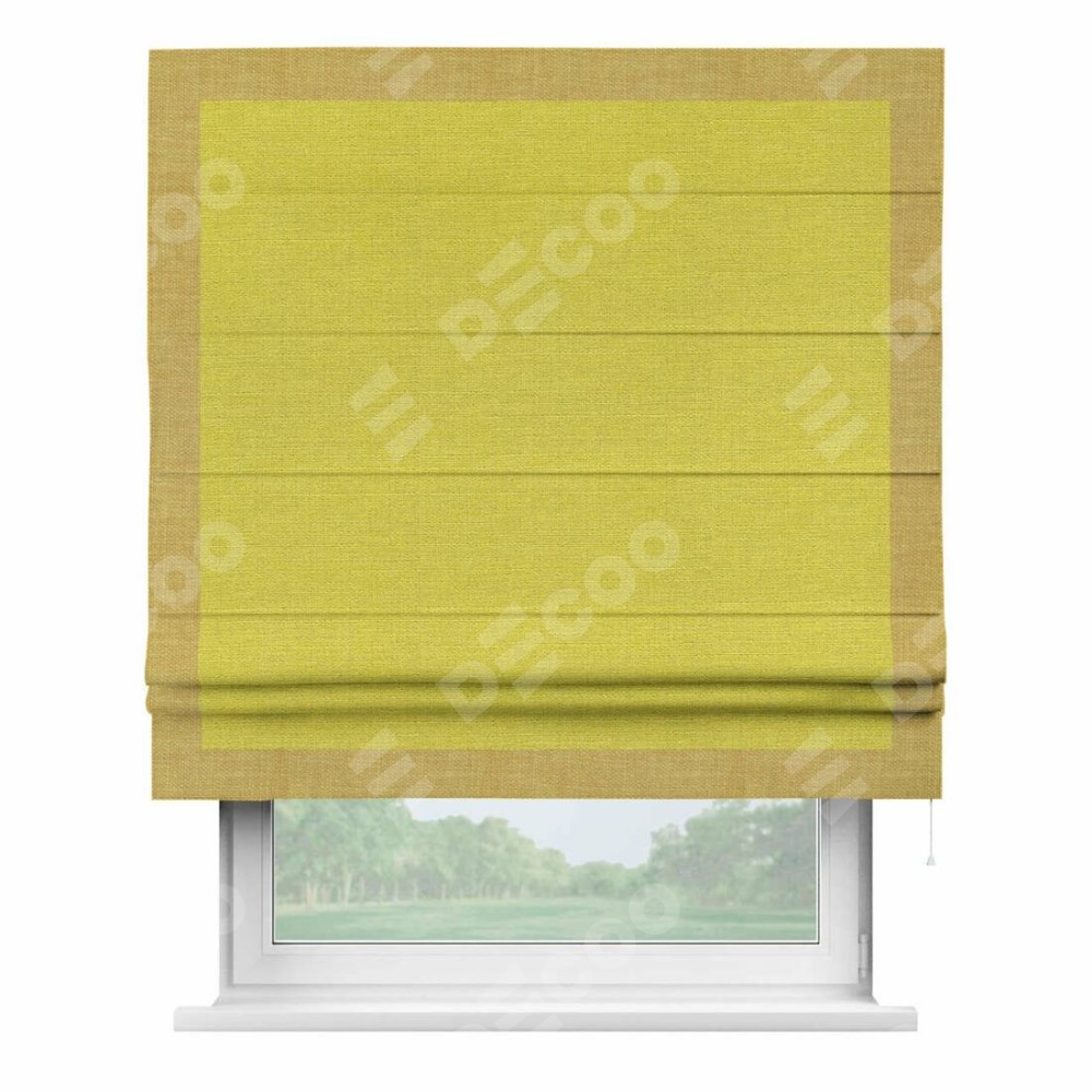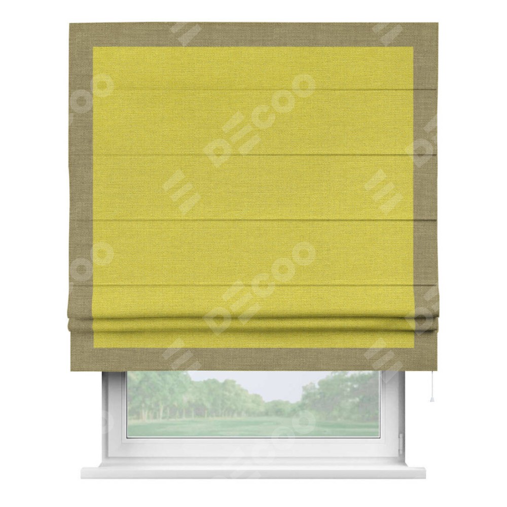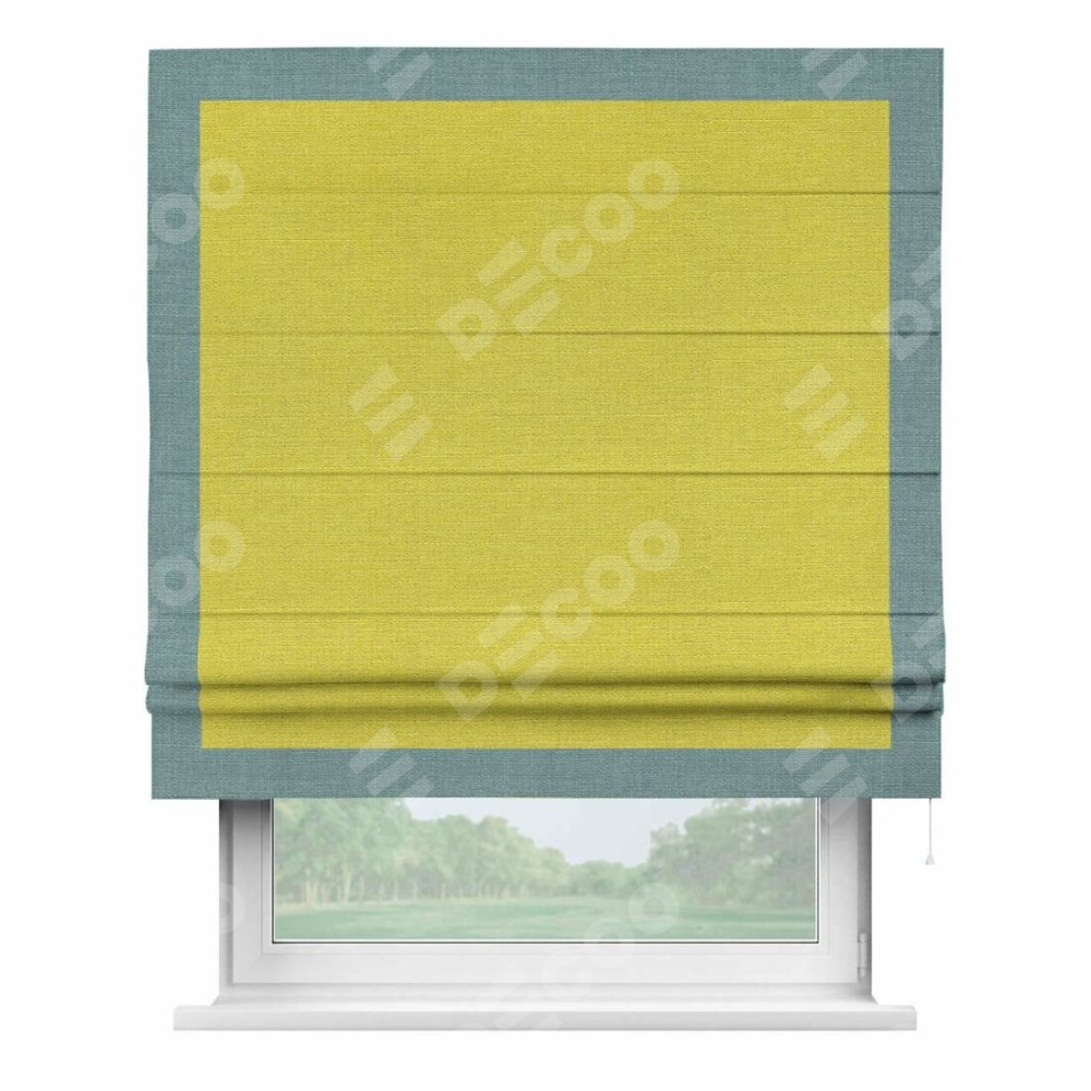Римская штора «Кортин» с кантом Чесс, для проема, ткань лён салатовый