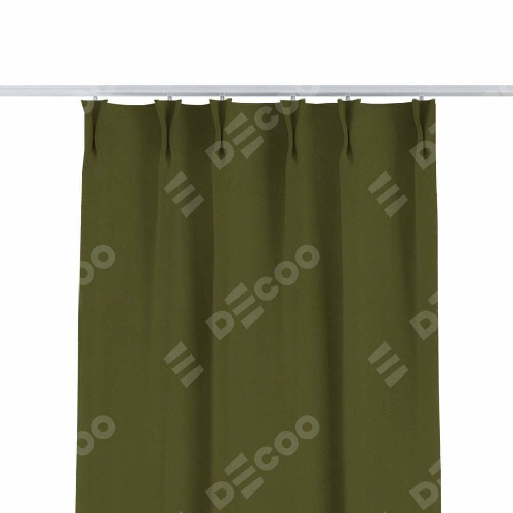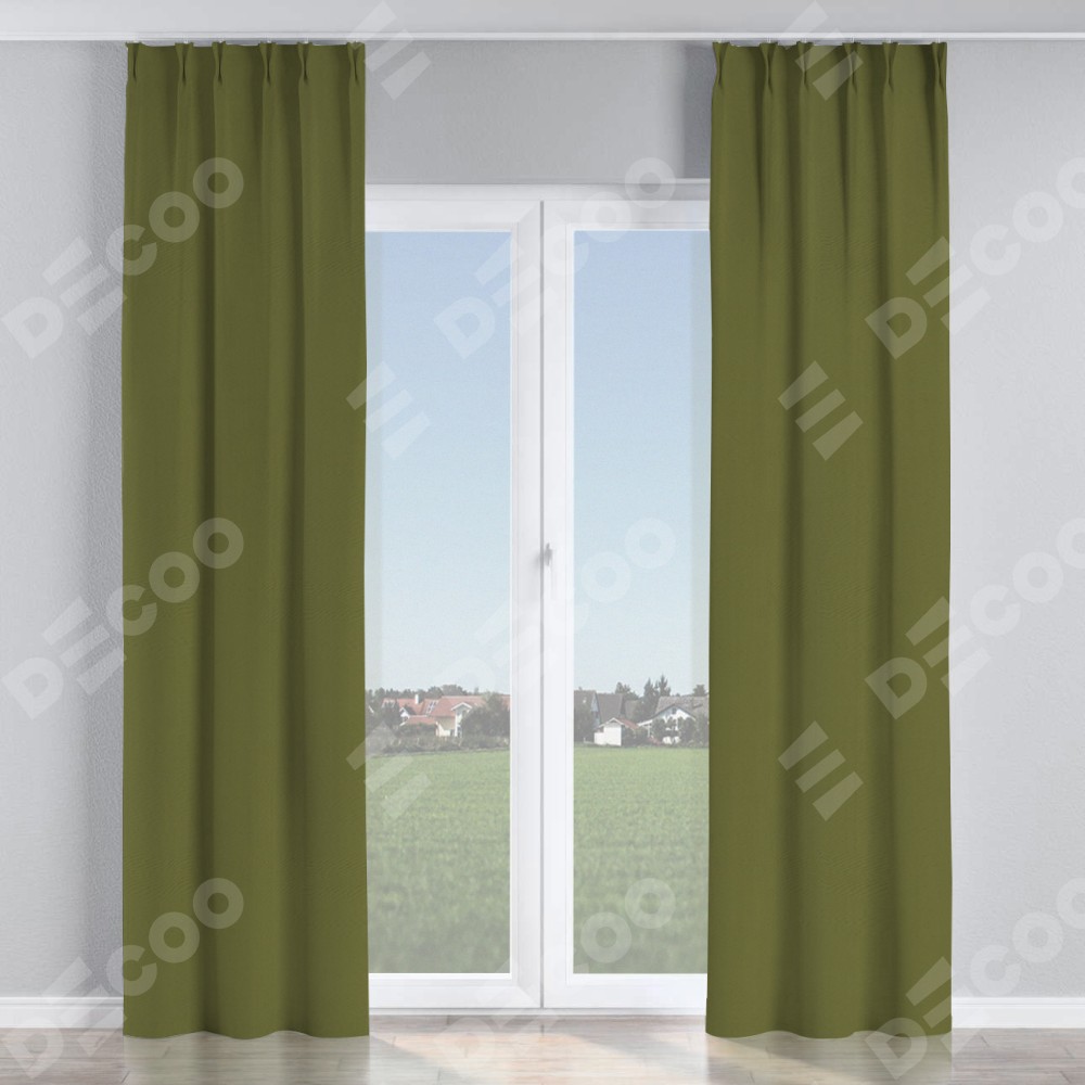 Комплект прямых штор, от производителя «Cortin», пошиты из ткани блэкаут однотонный зелёный, артикул ткани 81859. С изнаночной стороны в верхней части штор пристрачивается шторная лента с декоративными складками «Кустик». Для создания элегантных складок прямые шторы шьются по стандарту с коэффициентом 1:2 (на 100 см. ширины проёма 200 см. ширины ткани).