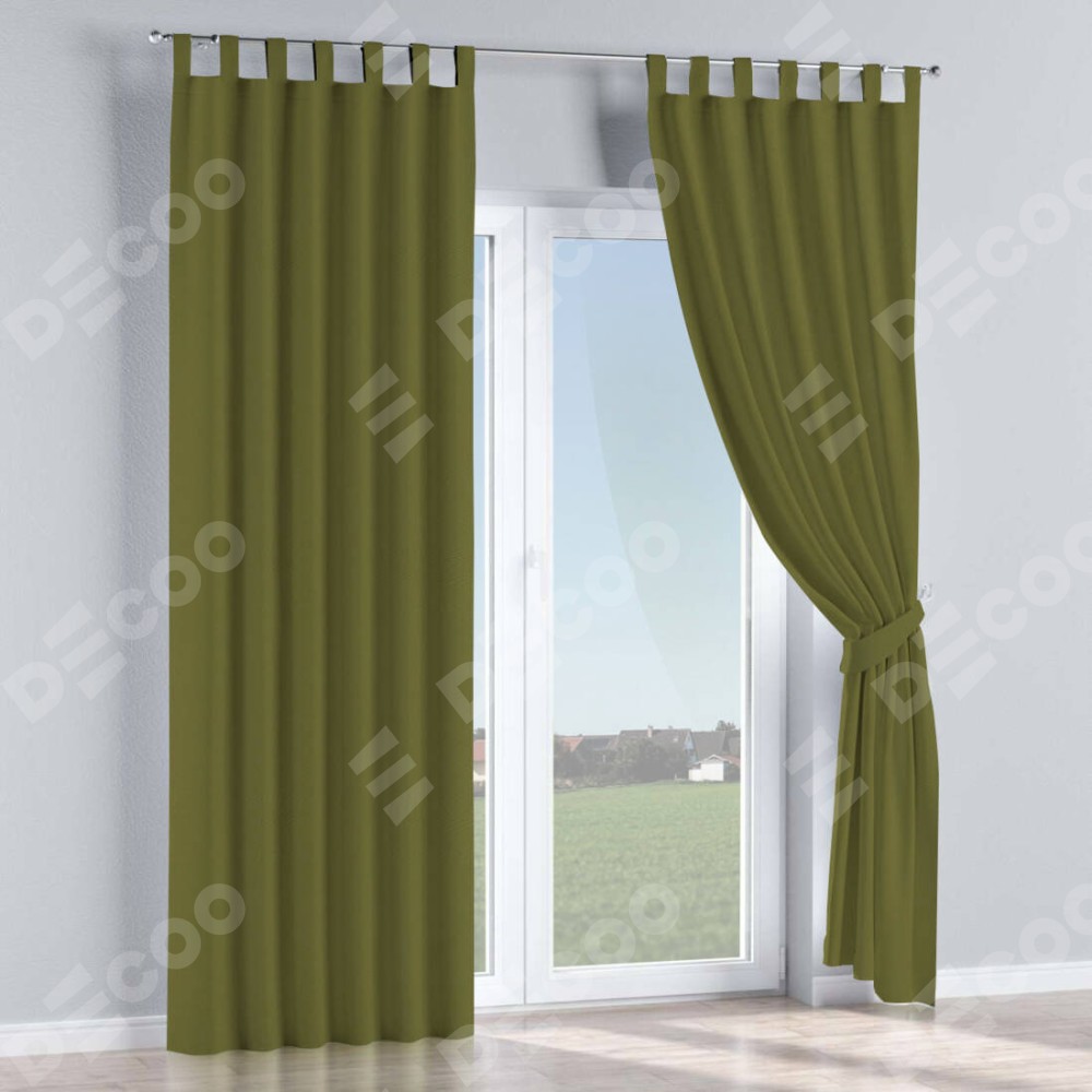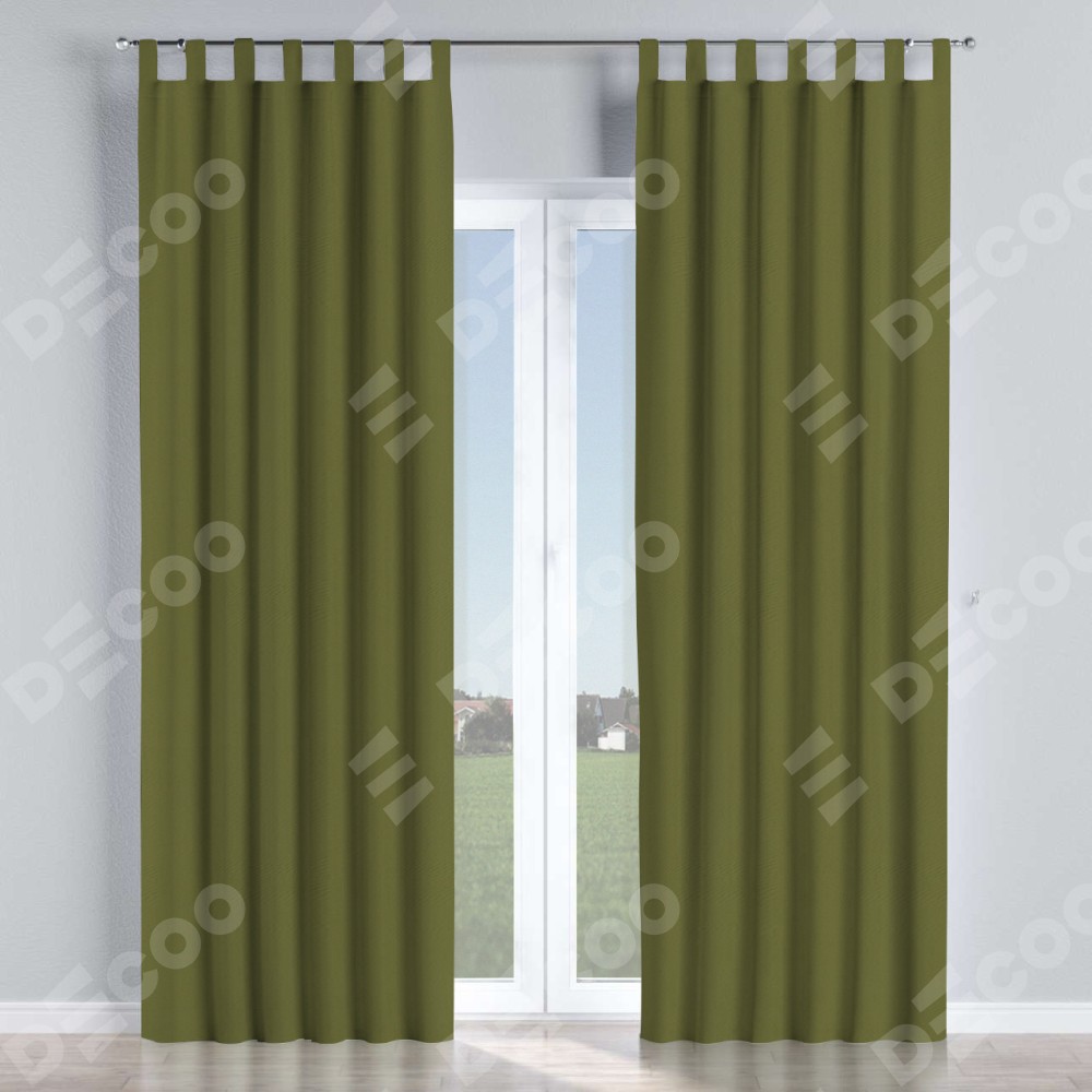 Комплект прямых штор, от производителя «Cortin», пошиты из ткани блэкаут однотонный зелёный, артикул ткани 81859. Данная модель пошита на петлях, комплектуется на выбор круглым карнизом и подходит для монтажа на стену или потолок. Прямые шторы на петлях шьются по стандарту с коэффициентом 1/2 (на 100 см. ширины проёма 200 см. ширины ткани), отличительным преимуществом данной модели является простой способ монтажа. Достаточно повесить ее на трубу и штора готова!