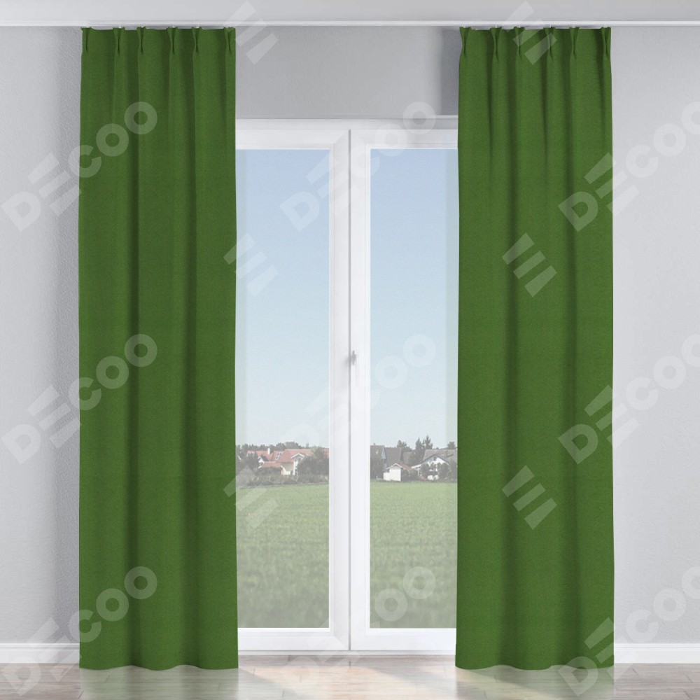 Комплект прямых штор, от производителя «Cortin», пошиты из ткани блэкаут однотонный зелёный перламутр, артикул ткани 81859п. С изнаночной стороны в верхней части штор пристрачивается шторная лента с декоративными складками «Кустик». Для создания элегантных складок прямые шторы шьются по стандарту с коэффициентом 1:2 (на 100 см. ширины проёма 200 см. ширины ткани).